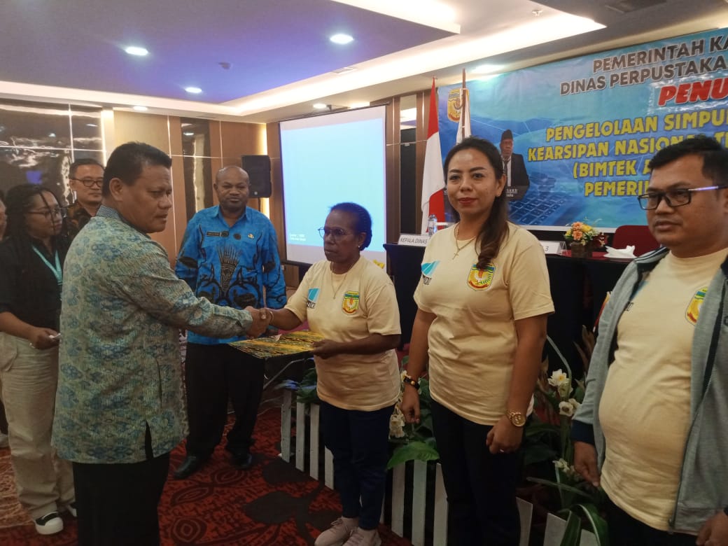 TIMIKA|Penutupan Bimtek Aplikasi Srikandi Versi 3 Pemerintah Kabupaten Mimika oleh Dinas Perpustakaan Dan Arsip Daerah. Pada Hari Ke Dua Bimtek sekaligus dilakukan penutupan dan Penyerahan Sertifikat Kepada Peserta Bimtek (OPD) Oleh Asisten III Petrus L, Konten Dan Ditemani Kepala Dinas Perpustakaan Dan Arsip Daerah Kabupaten Mimika Dantje Nere. (08/08/2024) Kepala Dinas Perpustakaan dan Arsip Daerah Dantje Nere kepada wartawan, di hotel Horison Diana, mengatakan.