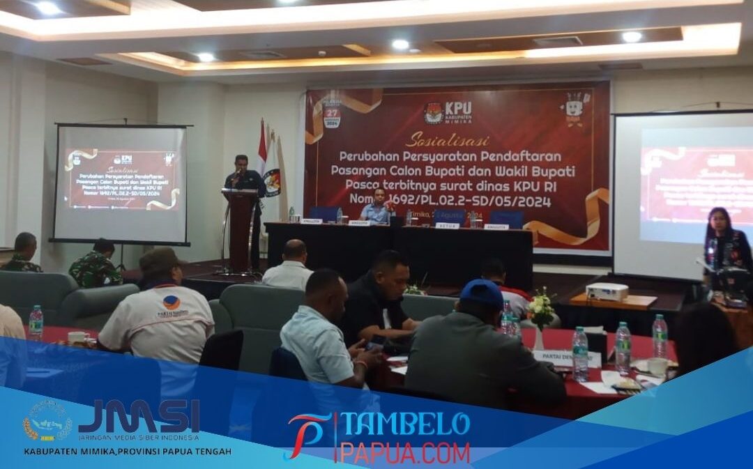 TIMIKA|Komisi Pemilihan Umum (KPU) Mimika – Papua Tengah melakukan Sosialisasi Perubahan Syarat Pendaftaran Pasangan Calon Bupati dan Wakil Bupati Pasca Terbitnya Surat Dinas KPU RI Nomor 1692/PL.02.2-SD/05/2024.
