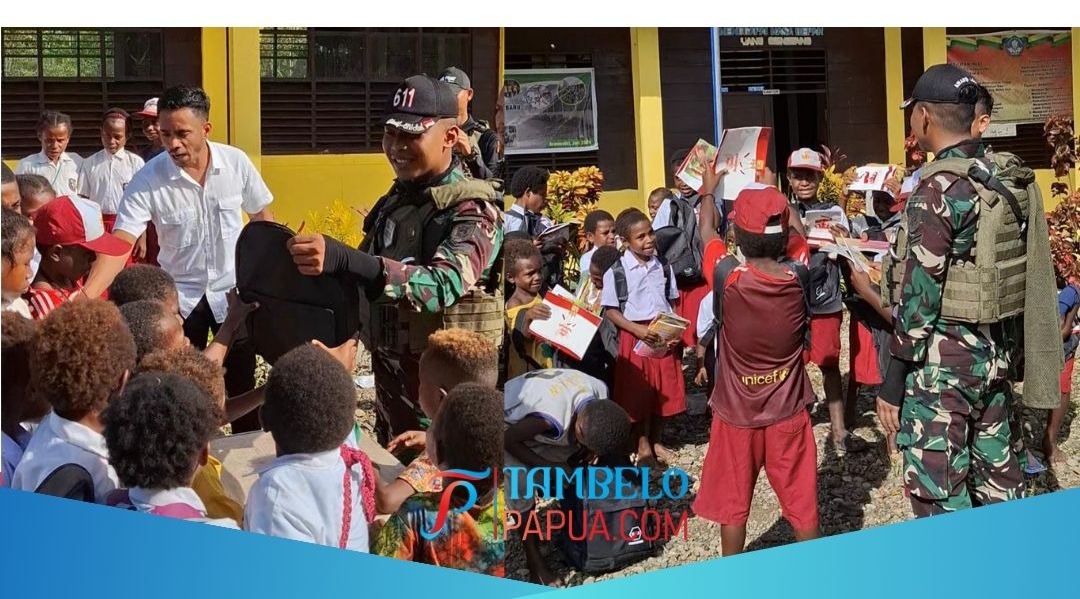 Bertempat di SDN-01 Aramsulki distrik Agimuga, Satgas Yonif 611/Awang Long melaksanakan kegiatan Binter dengan membagikan sarana penunjang kebutuhan sekolah, Kab. Mimika, Papua Tengah,“Senin (03/02/2025).
