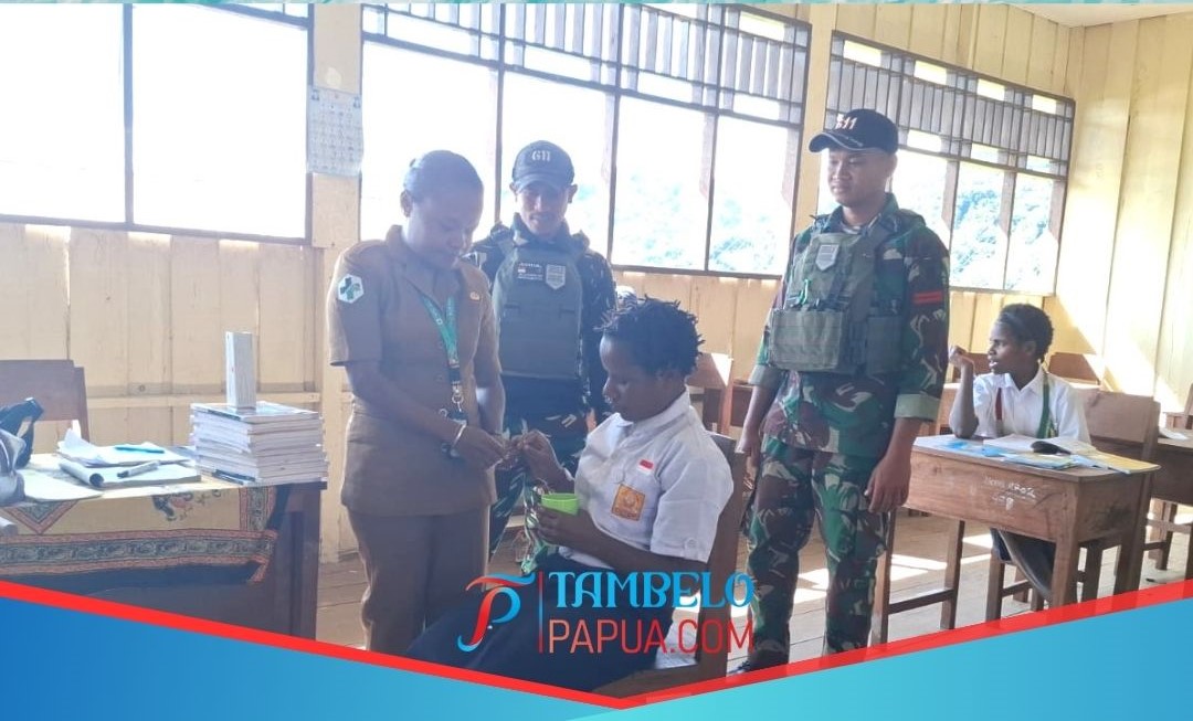 TIMIKA| Satgas Yonif 611/Awang Long Melaksanakan Kegiatan Komunikasi Sosial (komsos) Di SMP Negeri Jila Dengan Mendampingi Tenaga Kesehatan Dari Puskesmas Jila Dalam Pemberian Suplemen Penambah Darah Gagi Remaja Putri. ( 05/03/2025).