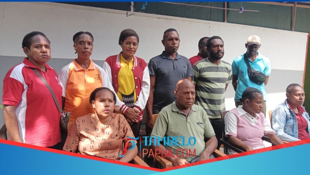 Foto Belasan Guru Yang Mengaku Dirumahkan Bertemu Lembaga Adat Lemasko.(Foto:tambelopapua.com)