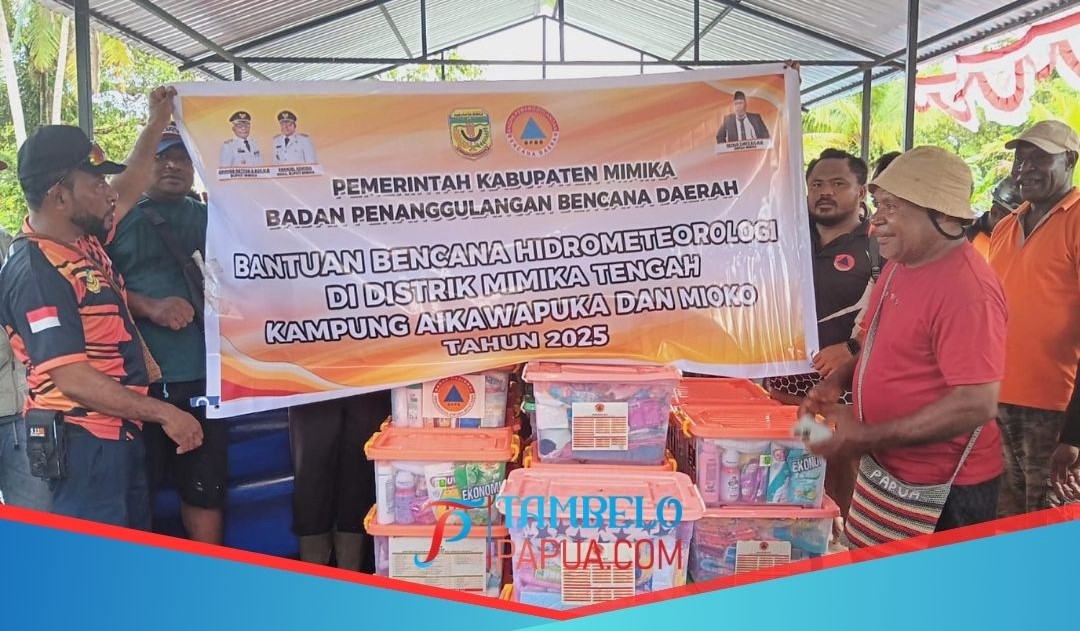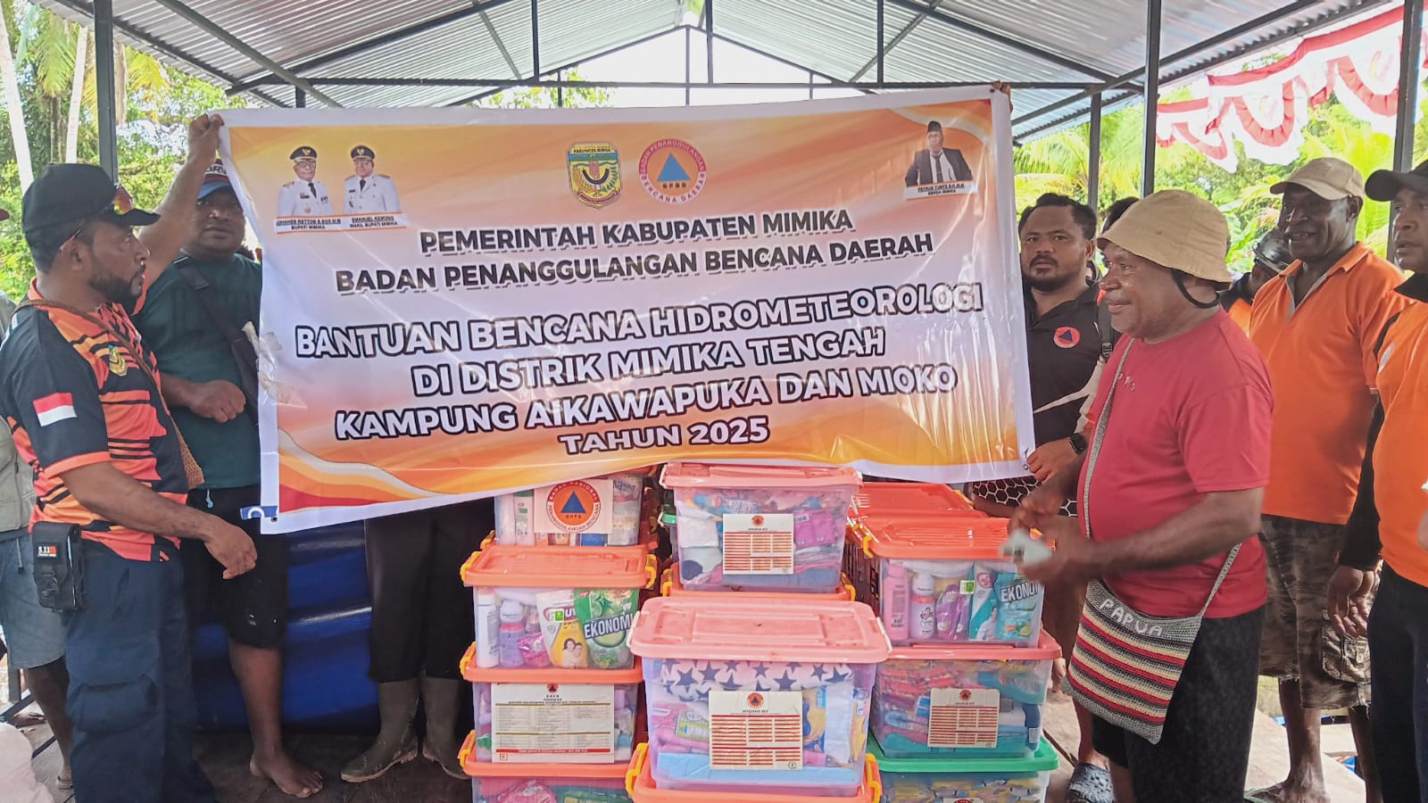 TIMIKA| Pemerintah Kabupaten Mimika-Provinsi Papua Tengah Melalui, Badan Penanggulangan Bencana Daerah (BPBD) Menyerahkan Sejumlah Bantuan Bencana Hidrometeorologi Distrik Mimika Tengah Kampung Aikawapuka Dan Kampung Mioko Tahun 2025.