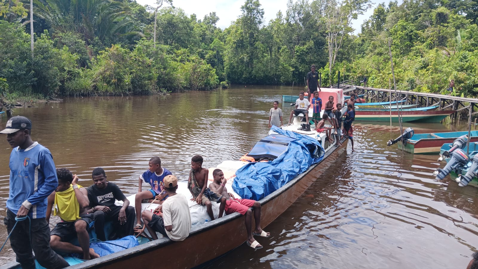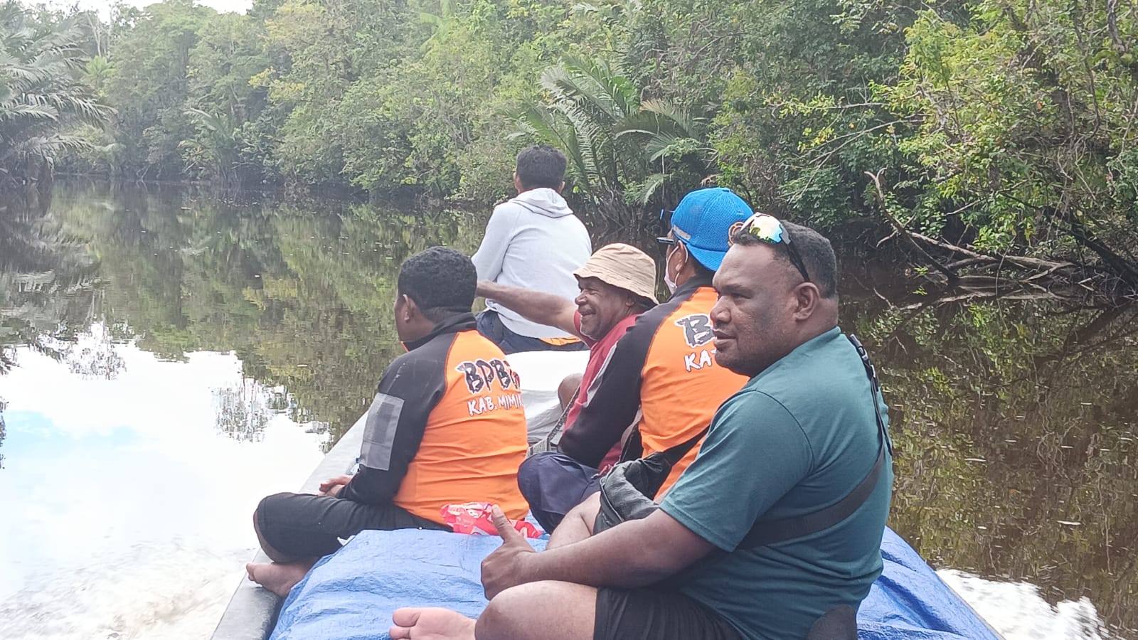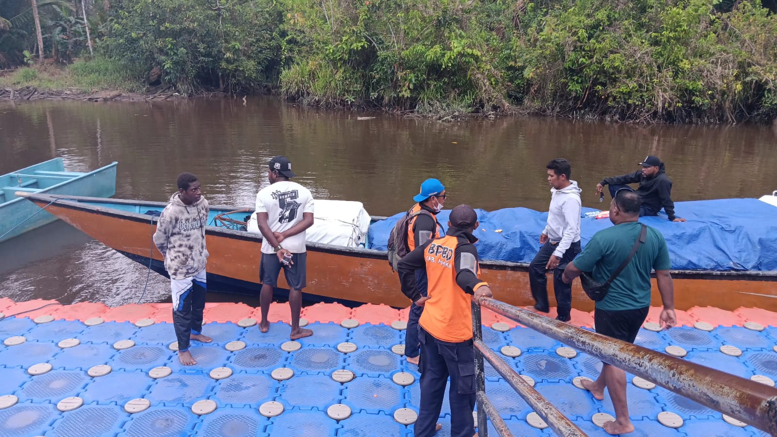 MAXI KELANANGAME. S IP. KEPALA SEKSI LOGISTIK DAN BANTUAN BENCANA BPBD KABUPATEN MIMIKA BERSAMAS TIM BPBD KABUPATEN MIMIKA USAI MENGANTAR BANTUAN KEMBALI MENEMPUH PERJALAN LAUT MENUJU PELABUHAN POUMAKO TIMIKA