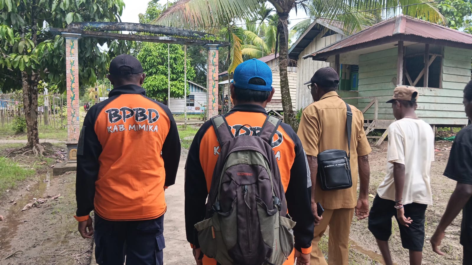 TIM BPBD MIMIKA BERSAMA KEPALA KAMPUNG AIKAWAPUKA MENUJU KANTOR KAMPUNG