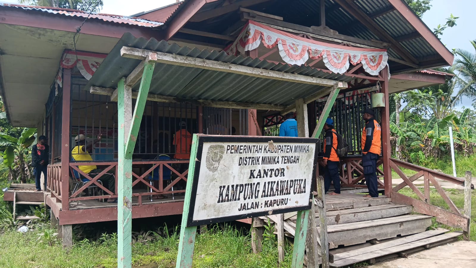 KONDISI KANTOR KAMPUNG AIKAWAPUKA SAAT TIM BPBD KABUPATEN MIMIKA DATANG MENYERAHKAN BANTUAN