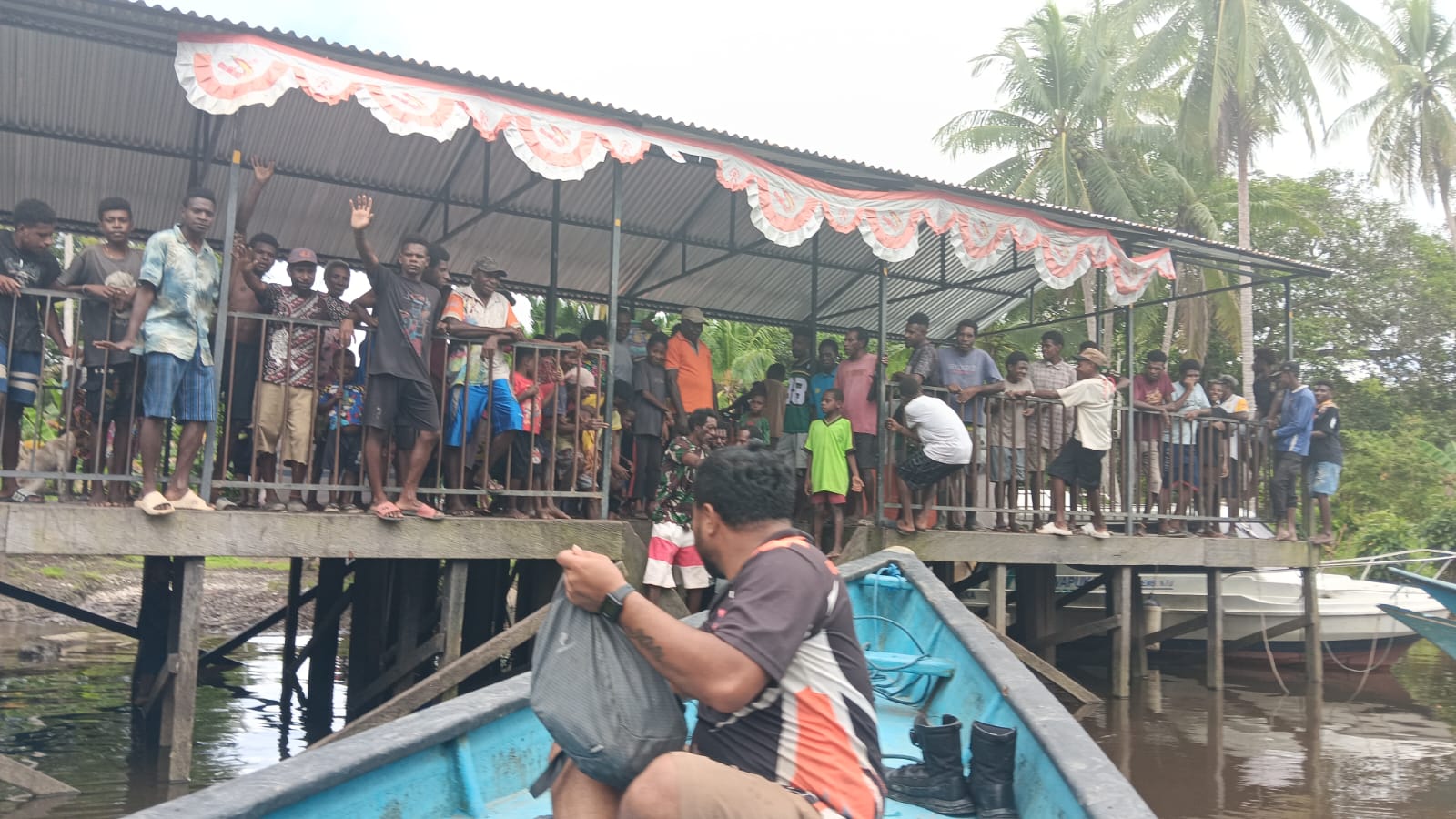 SUASAN DERMAGA KAMPUNG AIKAWAPUKA TERLIHAT DIPENUHI BANTUAN DARI PEMERINTAH KABUPATEN MIMIKA