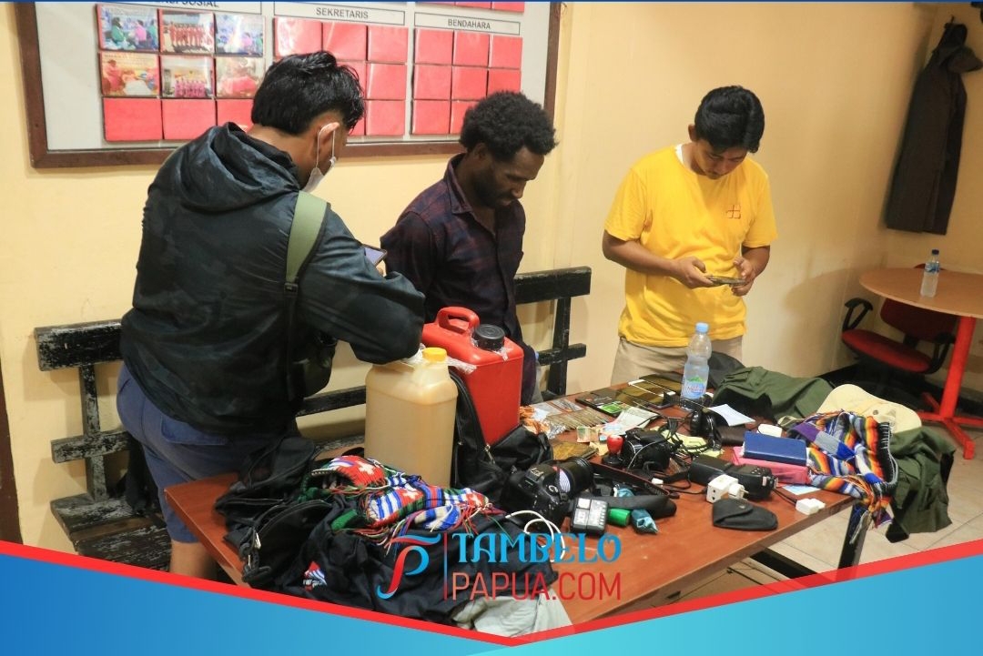 Aparat Saat Mengamankan Pelaku Beserta Barang Bukti Kepemilikan Amunisi Di Kota Jayapura Papua.