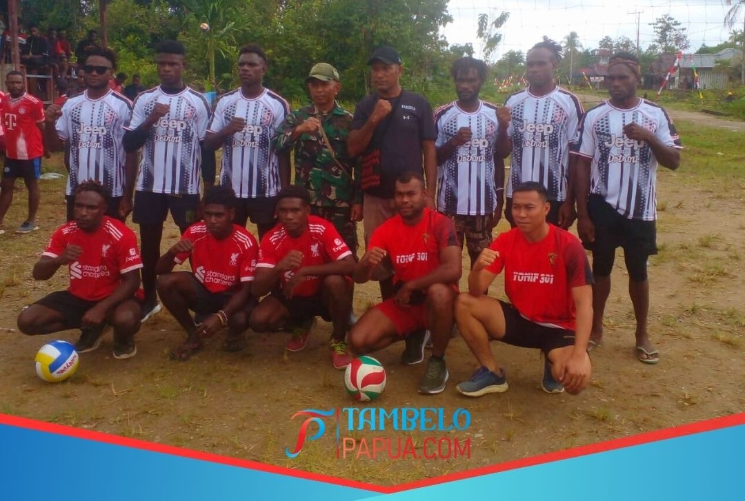 Tim Putra Voli Foto Bersama Sebelum Bertanding Di Lapangan Distrik Agimuga 11 Agustus 2025.(Foto: Tommas Pondayar)