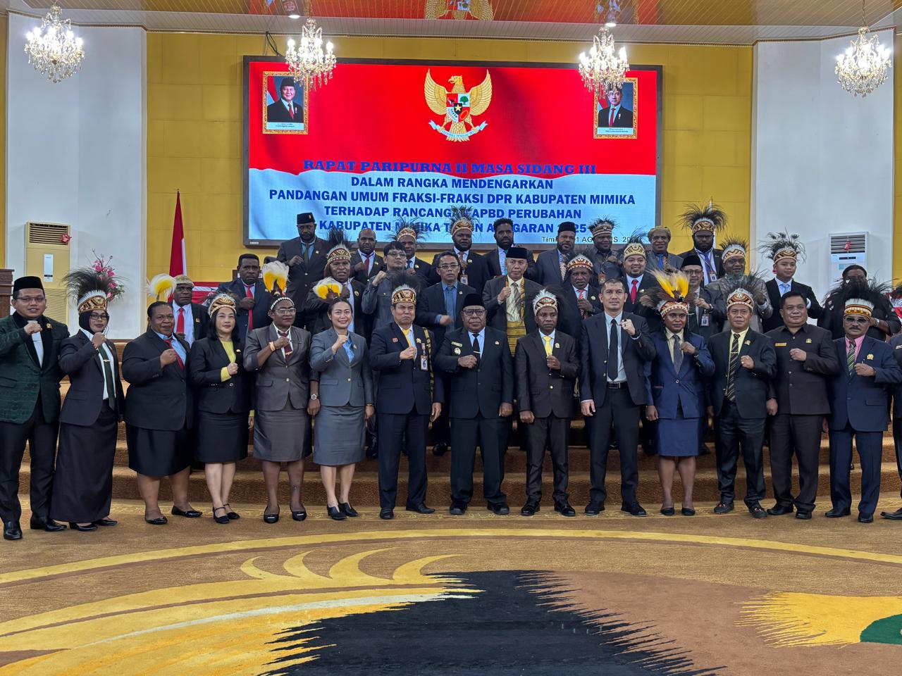 TIMIKA| Rapat Paripurna II Masa Sidang III DPRK Mimika tentang Pembahasan Rancangan Peraturan Daerah (Ranperda) Anggaran Pendapatan dan Belanja Daerah Perubahan (APBD-P) kabupaten Mimika tahun anggaran 2025, pada Kamis (21/8/2025).