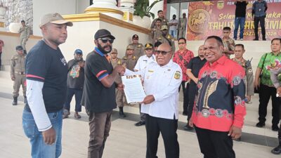Perwakilan Mogok Kerja 8300 Buruh, John Yawang Menyerahkan Aspirasi Kepada Wakil Bupati Mimika Emanuel Kemong….
