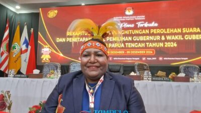 TIMIKA|Ketua KPU Provinsi Papua Tengah, Jennifer Darling Tabuni menjelaskan proses rekapitulasi tingkat Provinsi yang berlangsung…