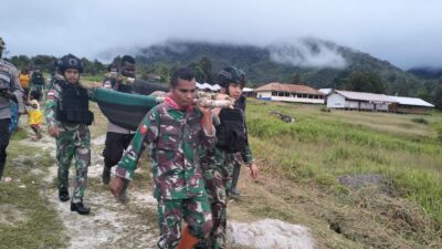 MIMIKA, | Satgas TNI dari Yonif R 631/Atg mengevakuasi masyarakat Kampung Dusun Momogen, Distrk Jila…