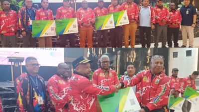 Foto Bersama Gubernur Papua Tengah Saat Momen Pelepasan Peserta Fornas Ke-8 Lombok NTB.(Rayar) TIMIKA| Gubernur…