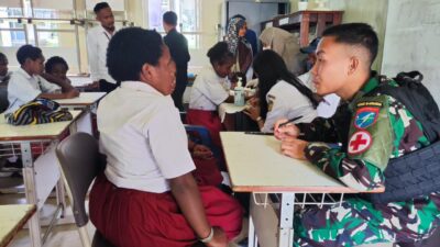 Foto : Suasana Satgas Yonif R 631/Atg Berikan Penyuluhan Kesehatan Kepada Siswa Siswi SD Tsinga,Kabupaten…