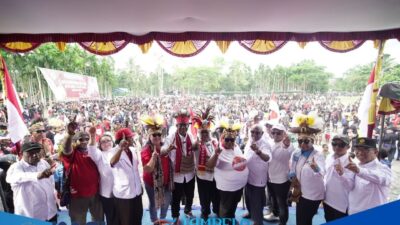 Ribuan Mssyarakat Tujuh Suku Membanjiri Lapangan Sepak Bola Kwamki Narama Pada Peresmian Posko JOEl Kemari….