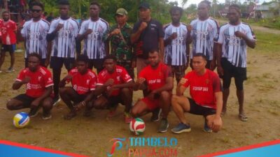 Tim Putra Voli Foto Bersama Sebelum Bertanding Di Lapangan Distrik Agimuga 11 Agustus 2025.(Foto: Tommas…